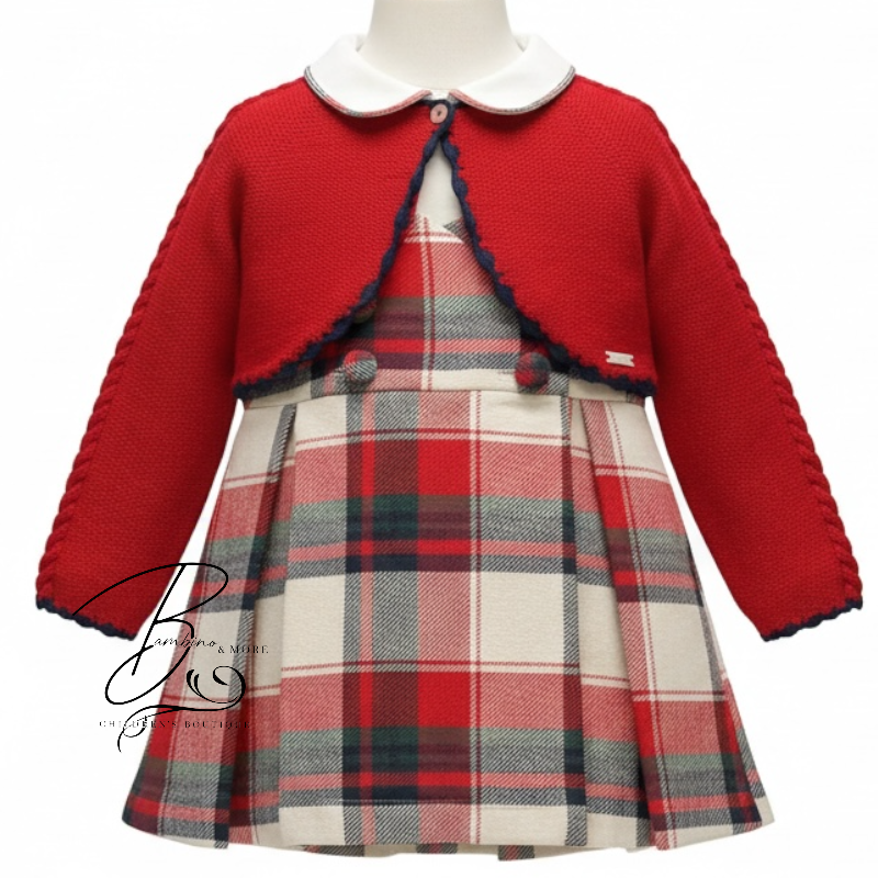 Cesar Blanco Girls Red & Emerald Pinafore Set