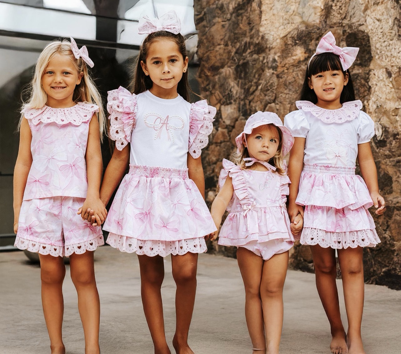 Add a touch of elegance and sweetness to her wardrobe with the A Dee Girls Bow-tique Chic Skirt Set. Designed in soft pastel pinks and crisp white, this charming two-piece outfit blends comfort with boutique-style fashion.