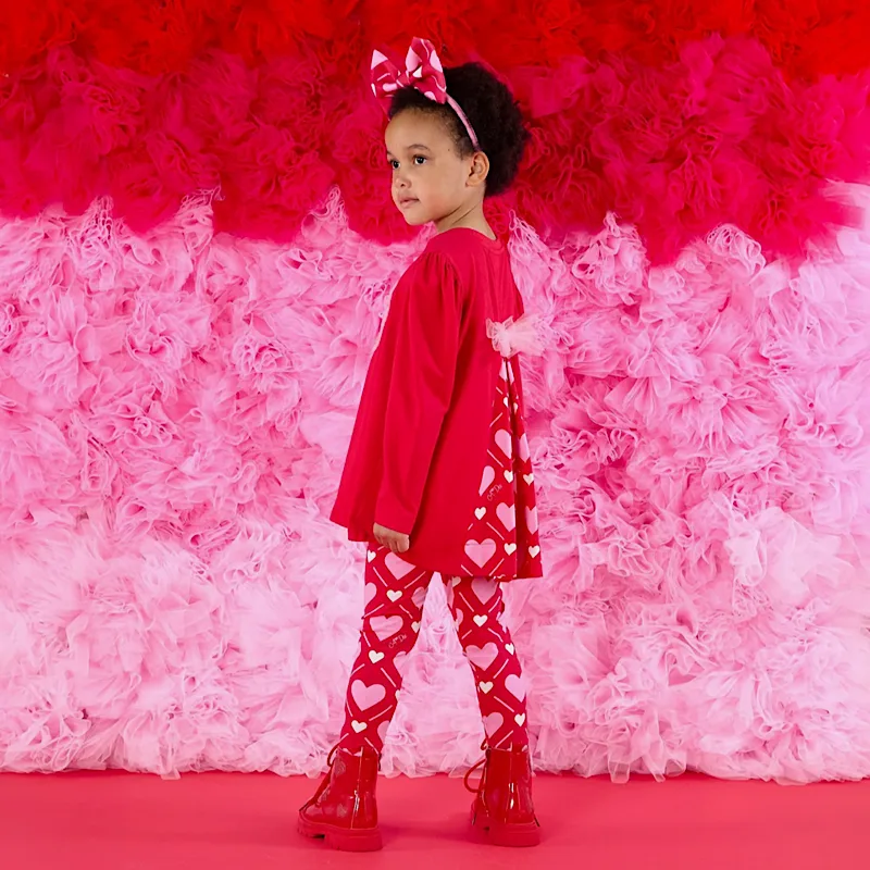A Dee girls red hear print leggings set.