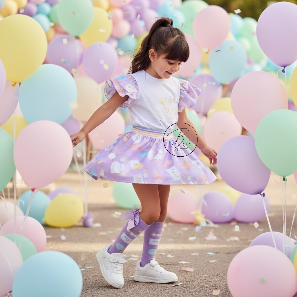 Add a sprinkle of fun to your little one’s outfit with our Dee Girls Pastel Parlour Hairbow. This charming lilac hair bow features an adorable ice cream cone design, perfect for summer days or any playful occasion. Crafted with care, it not only adds a pop of color but also keeps hair stylishly in place.