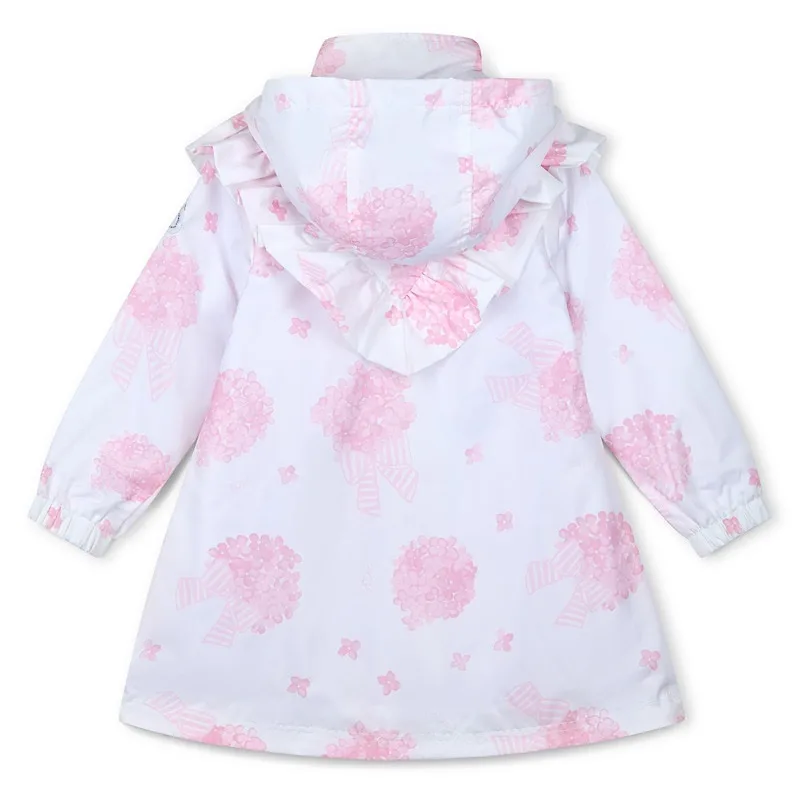 Lovely girls pink and white floral raincoat from the heavenly hydrangea collection for girls from A Dee.