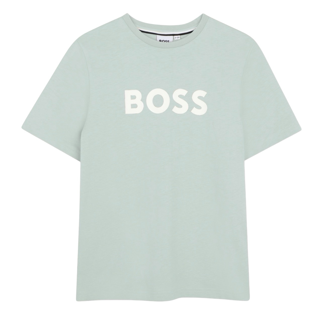 Boys green cotton t-shirt with matching logo branded swim shorts by Boss.