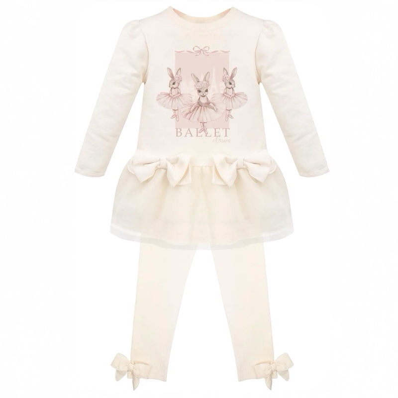 Ideal for the festive season. Girls pink and white striped skirt patterned with red snow globes and a bow at the waist matching the long sleeve top featuring the same design.