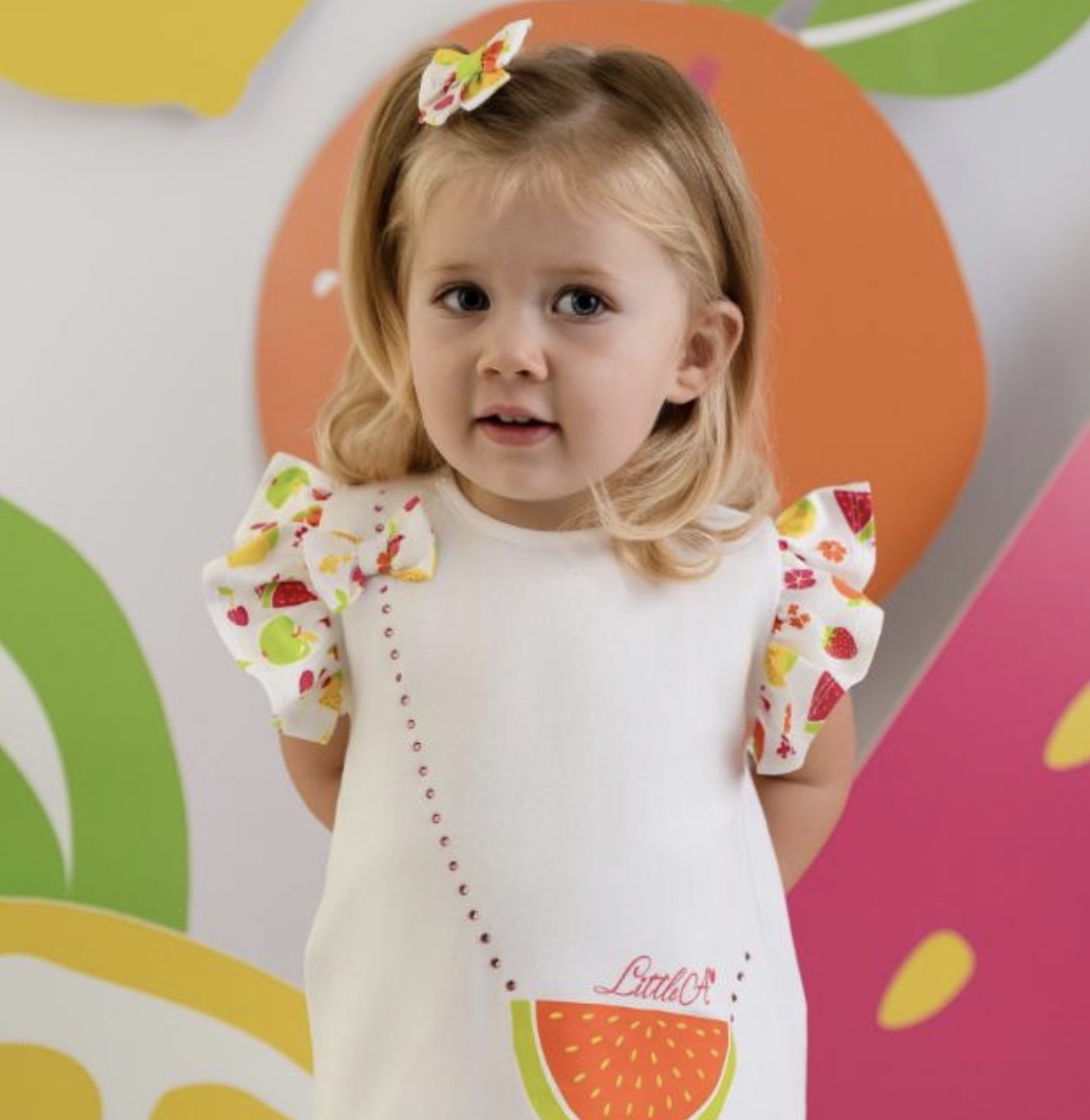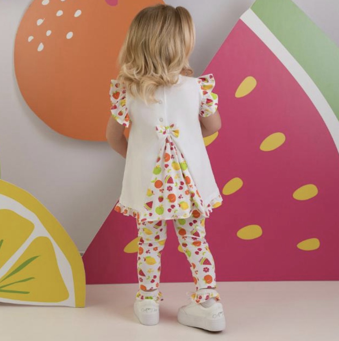 Brightly coloured girls fruit patterned legging set by Little A.